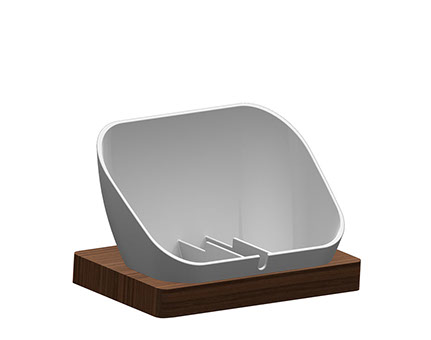 Mezzoforte Bianco consists only out of 2 components, a beech wooden base and ABS bowl. Manufacturing and transportation costs are therefore relatively low, making the product inexpensive and attractive for hotels to buy. Besides, the product is very sustainable, compared to electronic speakers, since it does not require an external power source.